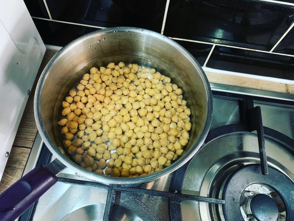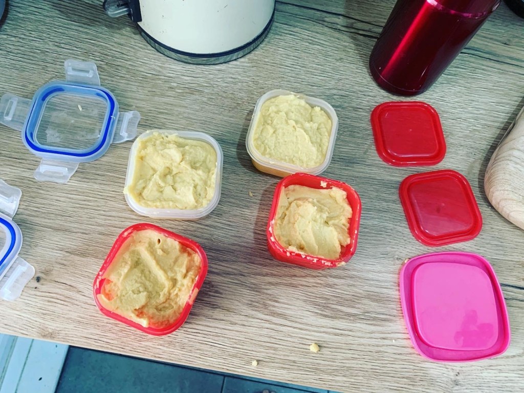 Then I prepped our hummous for the weekend! Soaked mine and S’s chickpeas overnight, (as she is doing the challenge with me over the weekend so she has the same ration of chickpeas), then boiled them for an hour and whizzed in the blender with some oil and water and garlic powder etc.