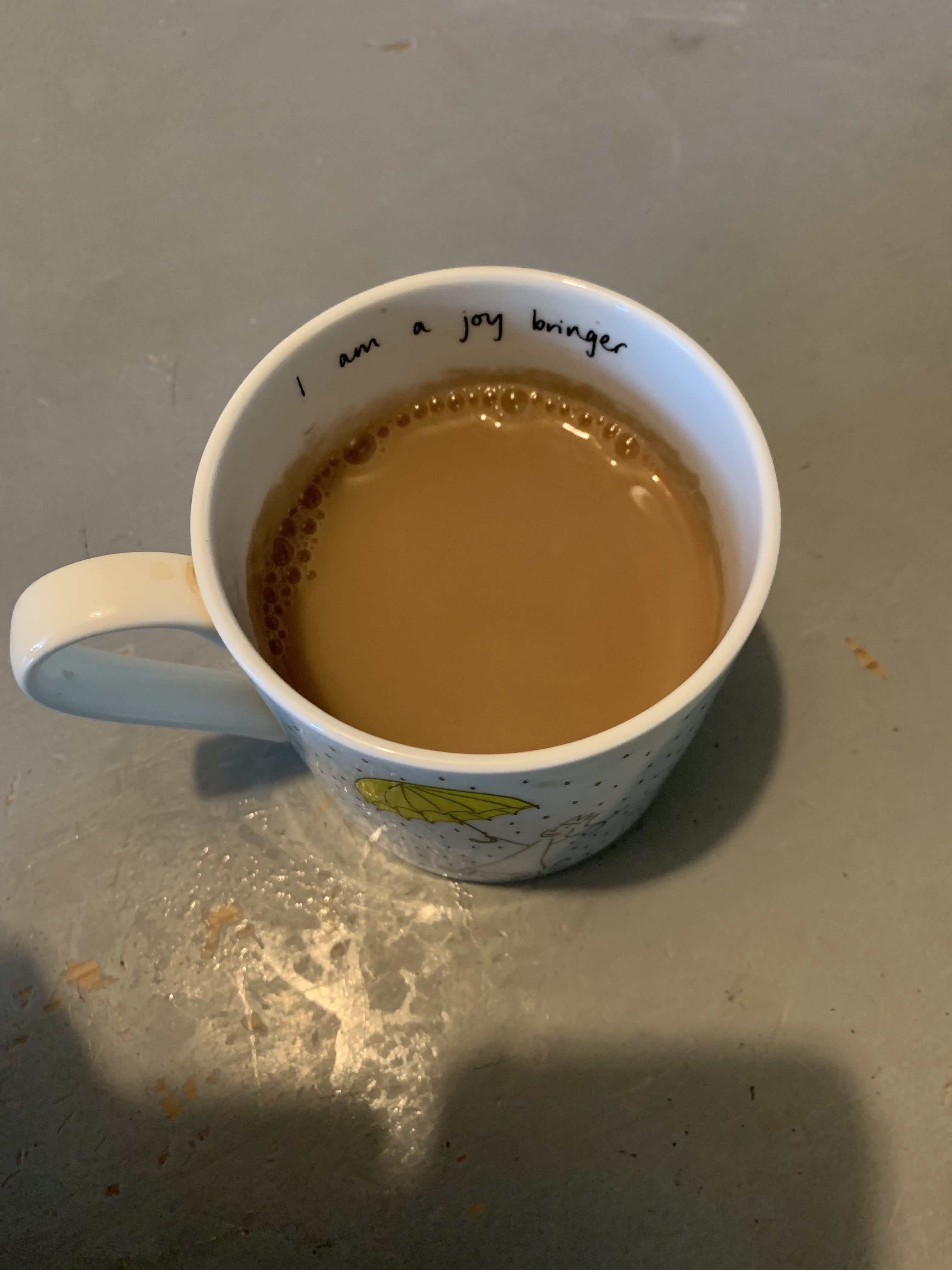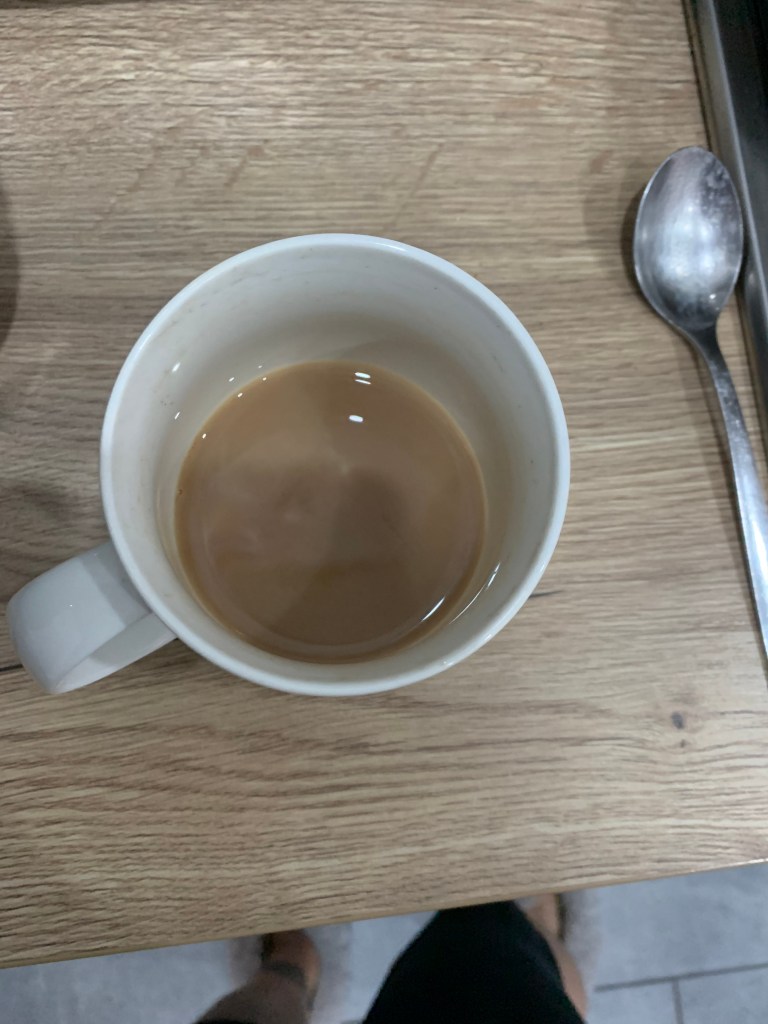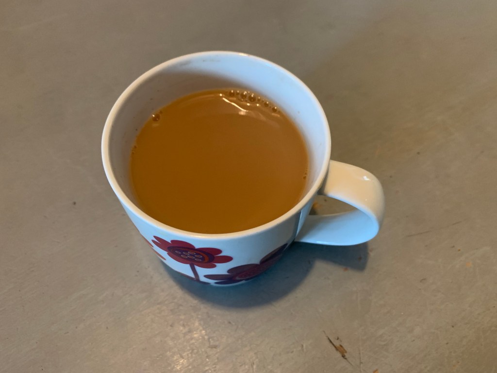 Started off with a cup of tea – I added a little milk this time. Forgot to take a photo until I’d drunk most of it!