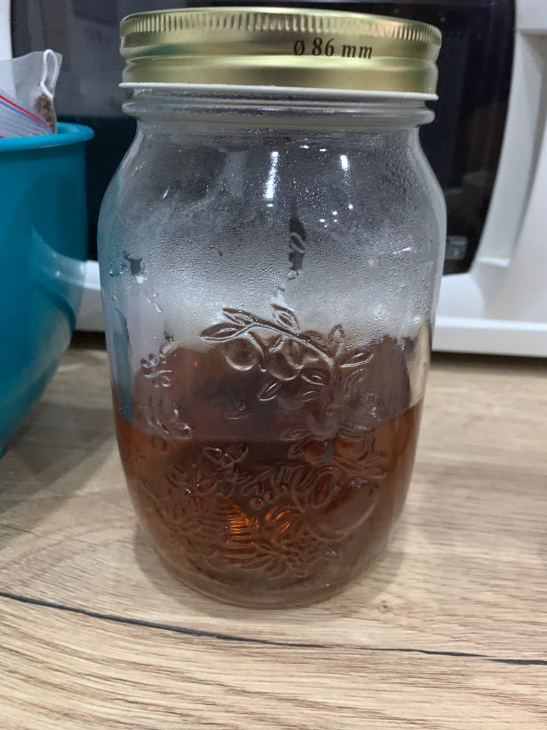 Last night after I had my fruit tea I left the teabag in the thermos with more hot water overnight (still very hot this morning!!) and have decanted it into a jar to cool in the fridge as a treat/cold drink to have later on. it was lovely as a nice cold drink!