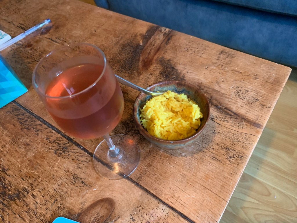 In the evening I was bit hungry so I had some more fruit tea in a wine glass and a little rice.
