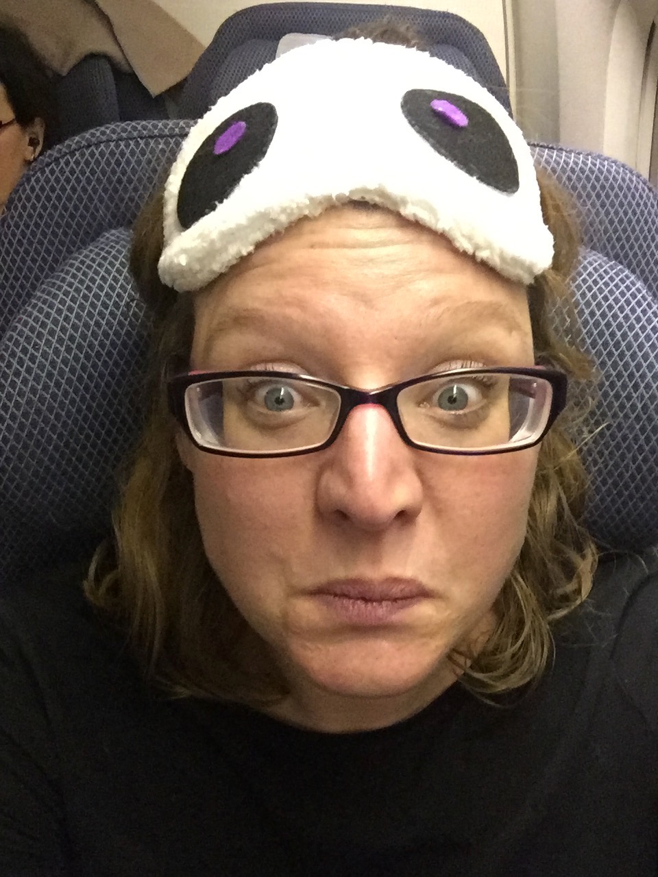I didn’t sleep as much as I’d hoped on the way over, so here I am on the plane looking somewhat crazed…