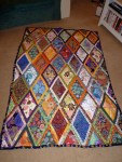 This quilt is called “Bordered Diamonds” by Kaffe Fassett – one of the first machine-made quilts I ever stitched. And it made a lovely wedding present for a friend of mine in Texas!