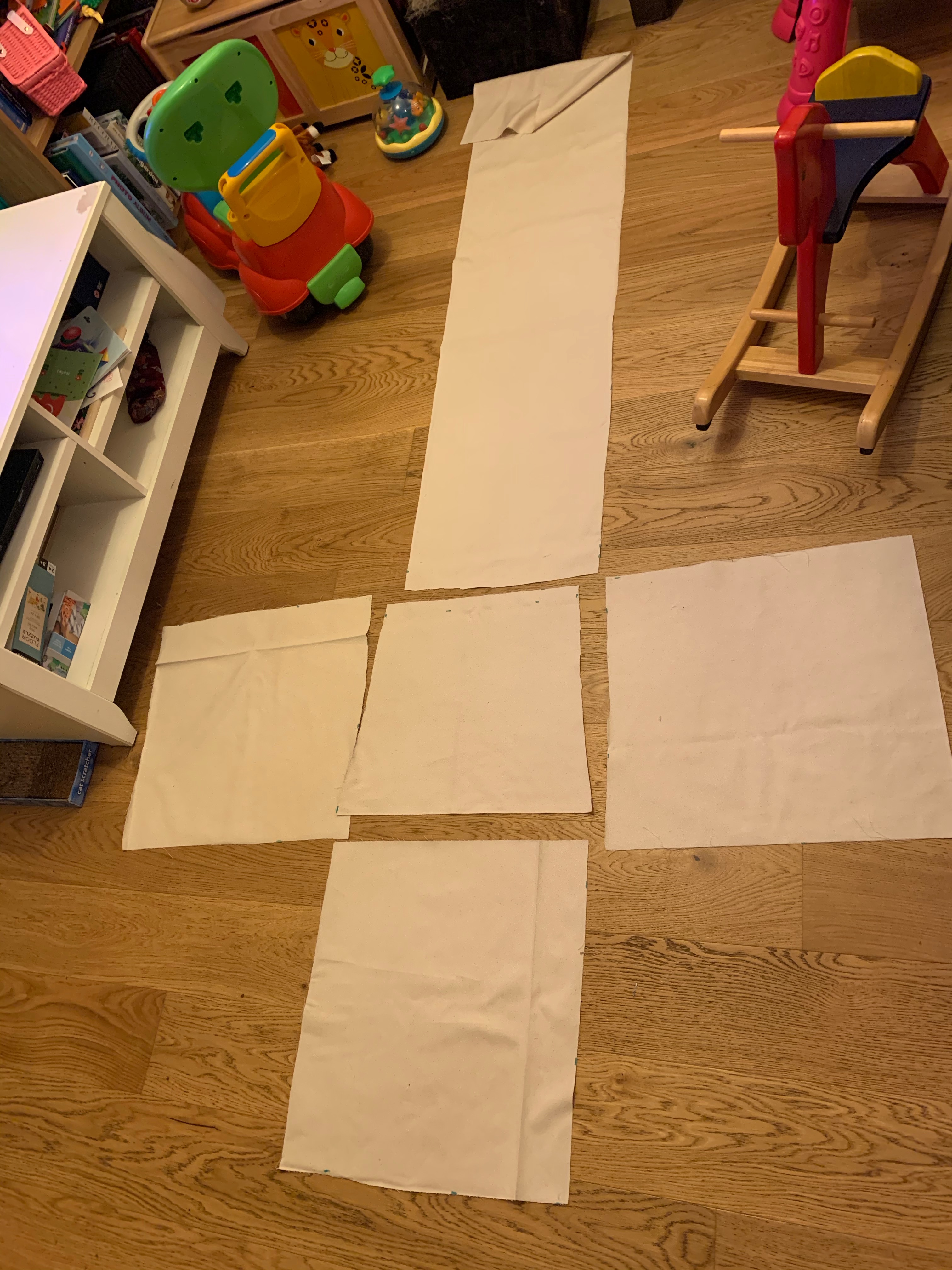 Annoyingly, I made a mathmatical mis-calculation – I scaled up the size of the pieces to cut out but I failed to increase the seam allowance by the same amount, so there have ended up being some holes and it looks a bit messy where they join teogether, but nevermind. Hopefully it’s not too noticeable in the end!