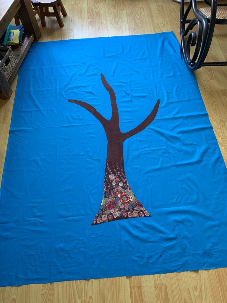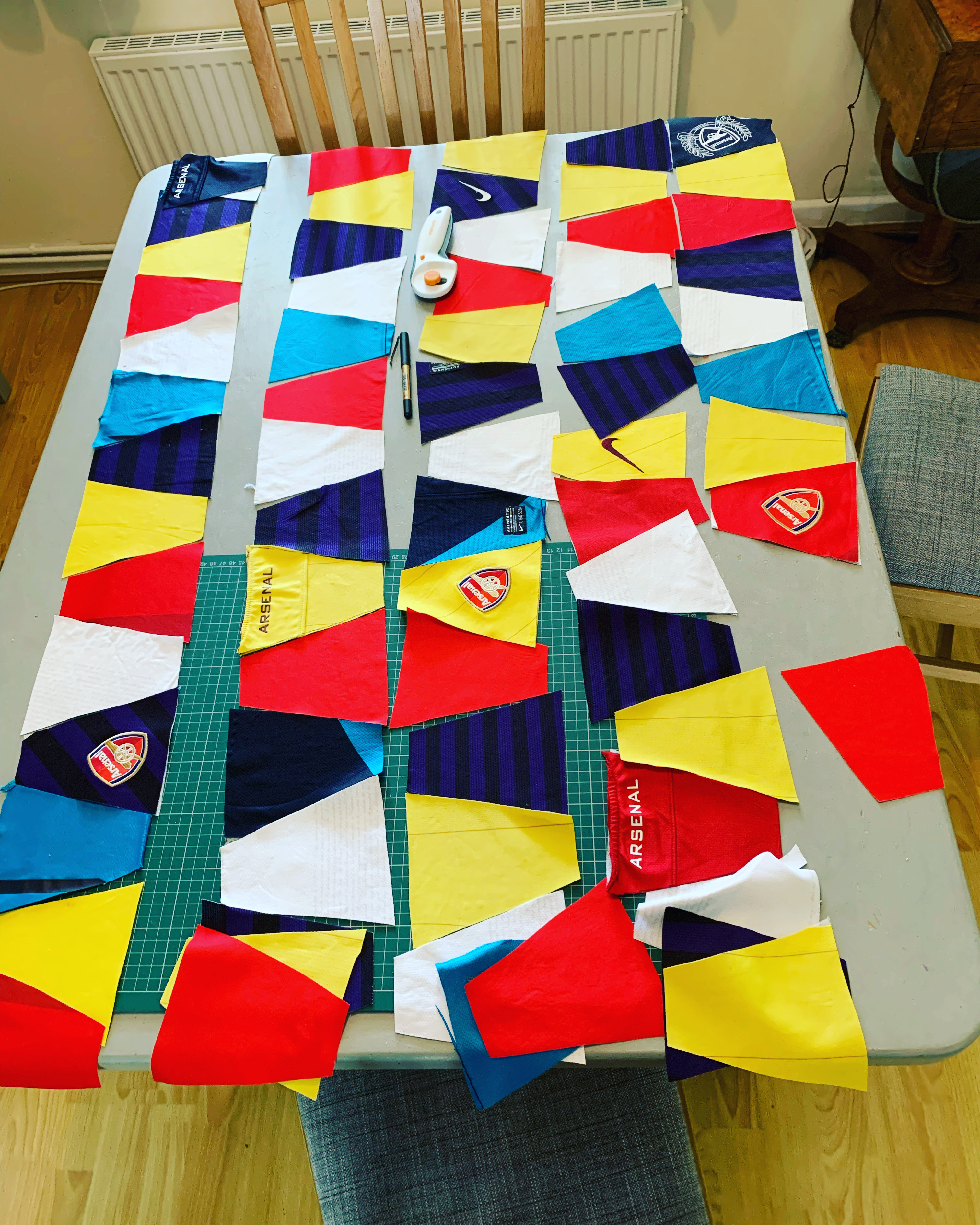 I’ve been wanting to make this one for ages. The original pattern had the tree “leaves”/circles all in one colour, which I think would have looked a bit better, but this was for my newest daughter and as we don’t have any of her baby clothes we wanted it to include other special memories for her like her football kit, school cardigan, pyjamas and nighties, favourite dress etc.
